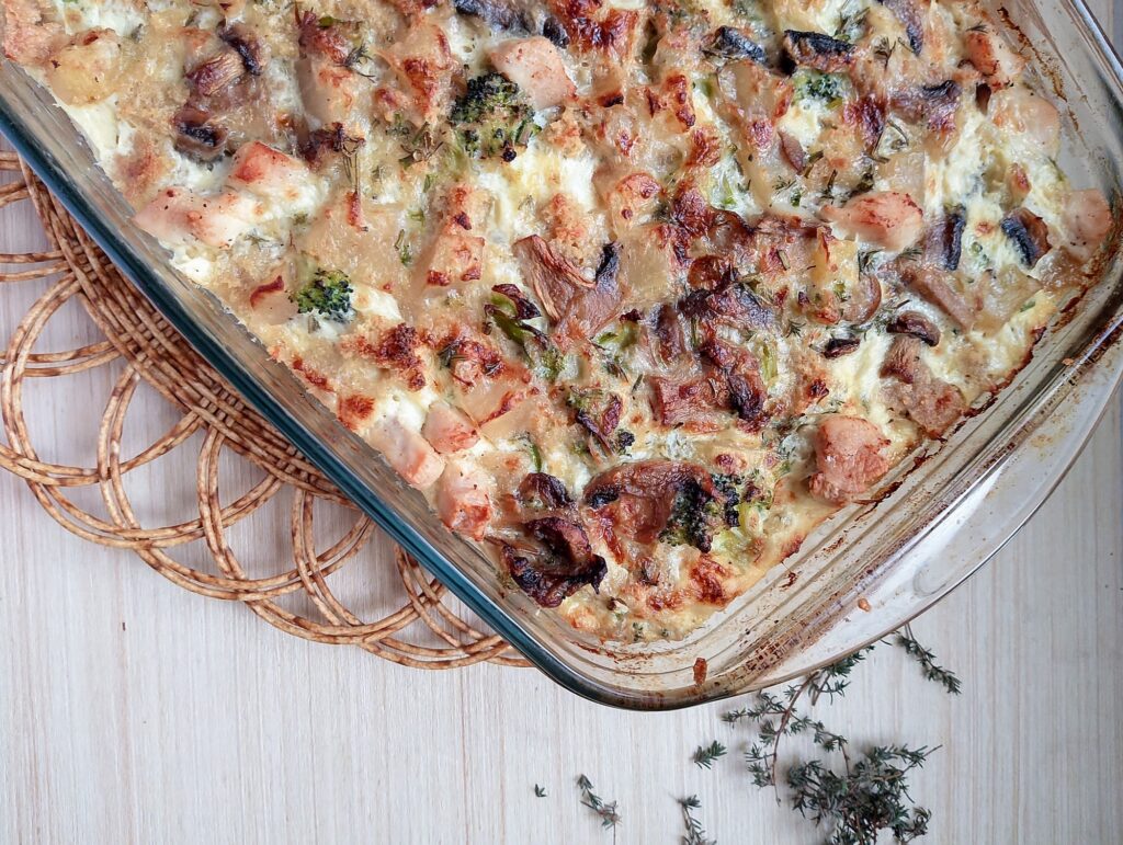 - Comforting and hearty – A warm, golden pudding filled with chicken, mushrooms, potatoes, and cheese that feels like home in every bite.